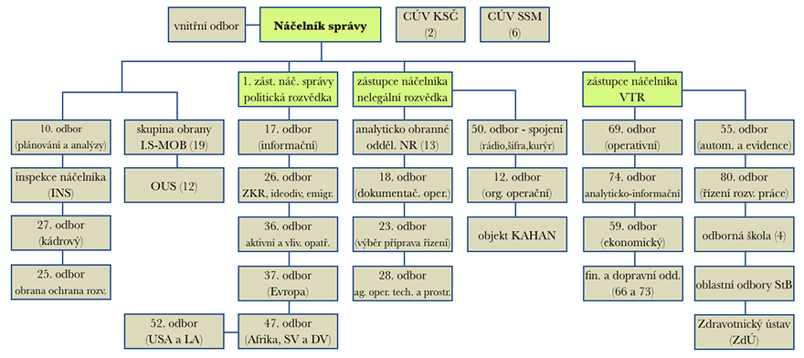 Struktura I. správy SNB – po poslední reorganizaci v roce 1988